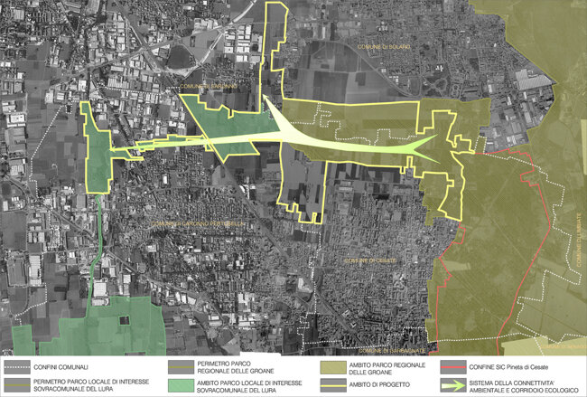 Il progetto intervine su vaste aree agricole dei comuni di Cesate, Solaro e Caronno Pertusella situate a cavallo tra le provincie di Milano e Varese in un contesto fortemente urbanizzato.
